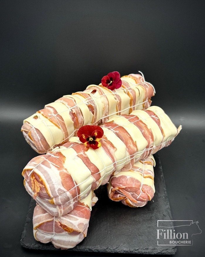 Filet mignon enveloppé d'emmental et de lard fumée.